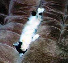 | 肉球が柔らかいということは外で育ったんじゃないということだし、トイレができるという事実を考え合わせると、この猫はどこかの飼い猫かもしれない。もしどこかの家で飼われていた猫だったら、飼い主はどんなに心配していることでしょう。 | |||||
